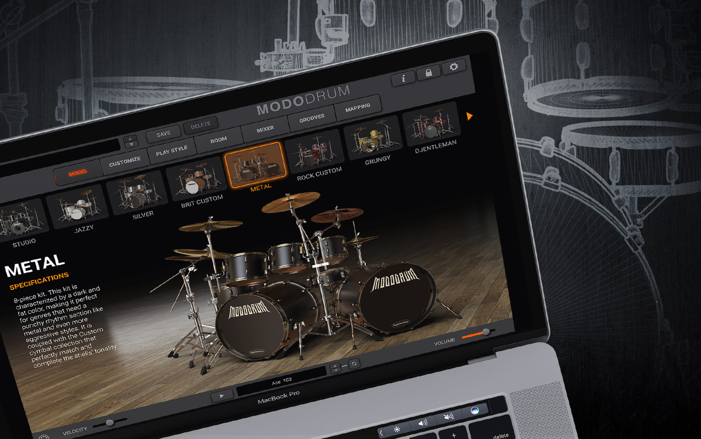 Entering the MODO DRUM 1.5 "Showroom," users will be astonished by the wealth of kits at their fingertips. Now there are 13 distinct drum sets in total for every style and genre including 3 exciting new kits: Silver, Brit Custom and Metal, which IK researched and developed to make MODO DRUM 1.5 truly a 1-stop drum shop for all music makers.