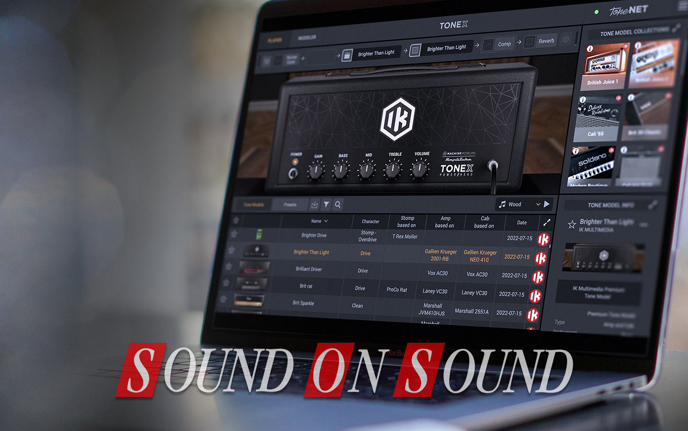 Sound On Sound has just published a hands-on review of AmpliTube TONEX, IK's new software application and plug-in to create, play and share Tone Models.