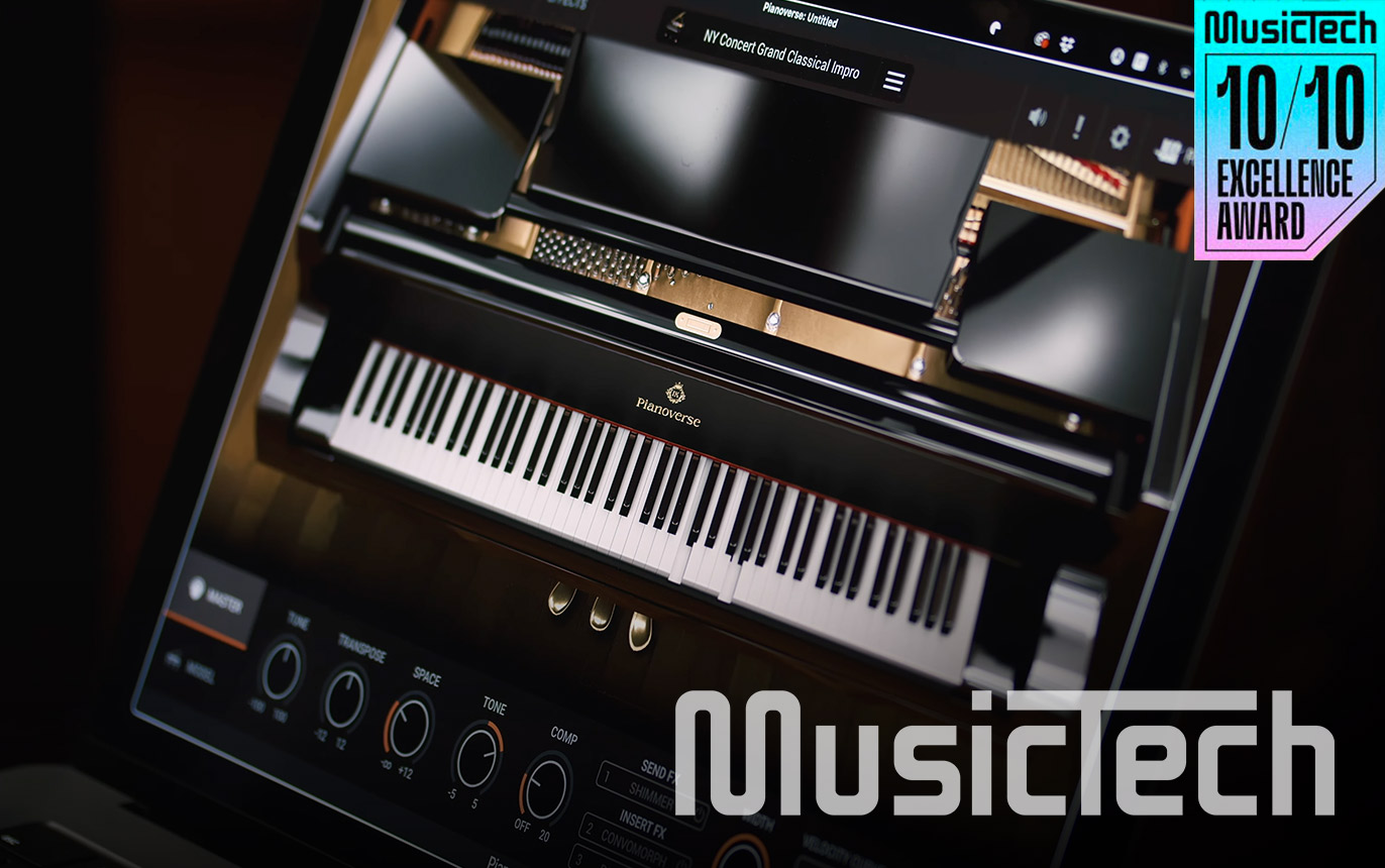 MusicTech reviews IK's new Pianoverse giving it their highest score of 10/10 and highest award for excellence. They begin by examining the 4 pianos currently available in Pianoverse and continue describing the spaces and effects sections that distinguish Pianoverse from other sampled instruments.