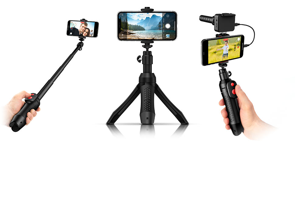 iKlip Grip Pro is a compact, multifunction smartphone and camera stand that’s really 4 accessories in one: a secure tabletop tripod, large-grip video handle, monopod, and tripod adapter with UNC mount for additional gear. It gives you all the tools you need for great shots at any angle, indoors or out, and even includes a convenient Bluetooth® shutter.