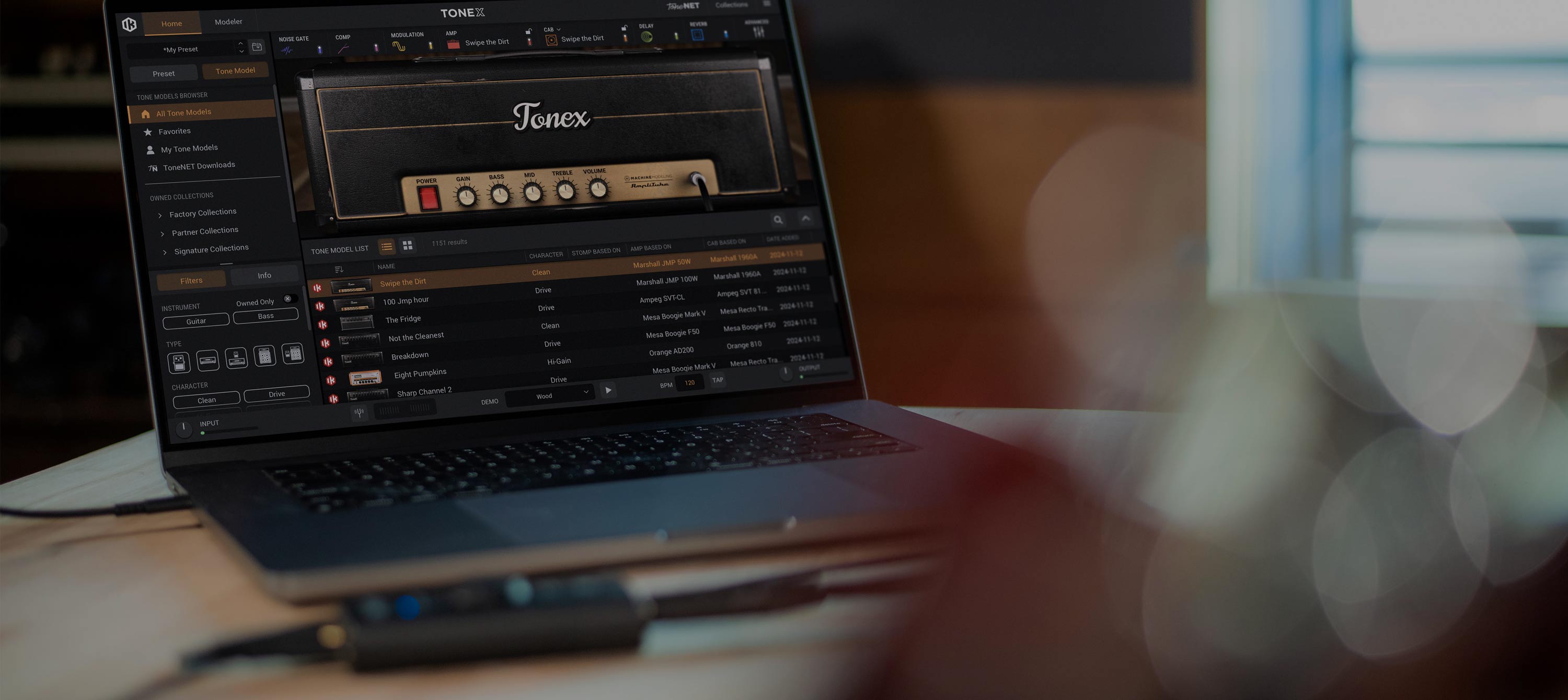 TONEX software utilizes breakthrough AI Machine Modeling™ technology, allowing you to model the sound of any amp, cabinet, combo, or pedal and transform it into a plug-in, all with sonic accuracy that is virtually indistinguishable from the original. You can instantly access over 1,200 Premium Tone Models or explore and download the massive selection of user-created Tone Models available on ToneNET. Create your guitar or bass tracks using the most coveted gear in the world, including your own.